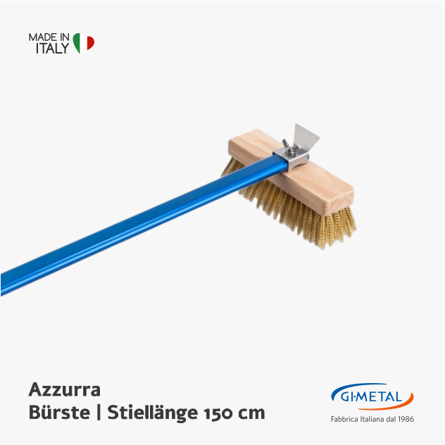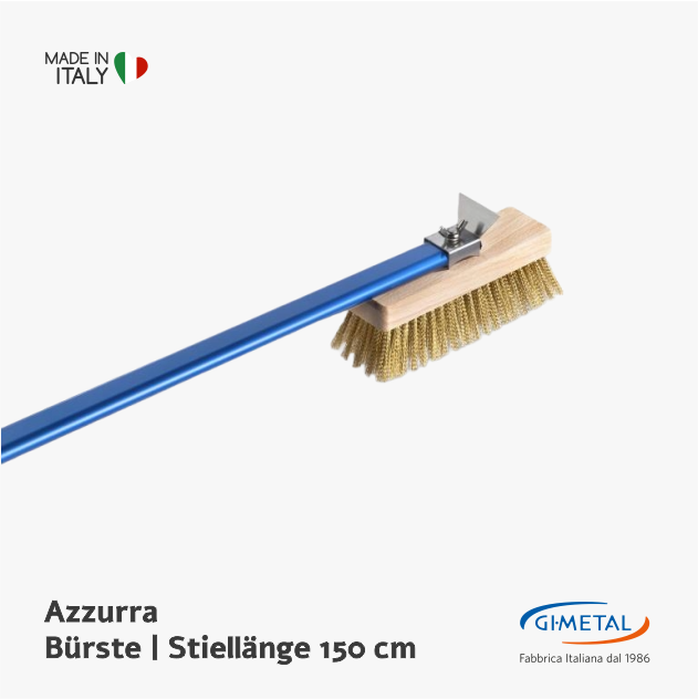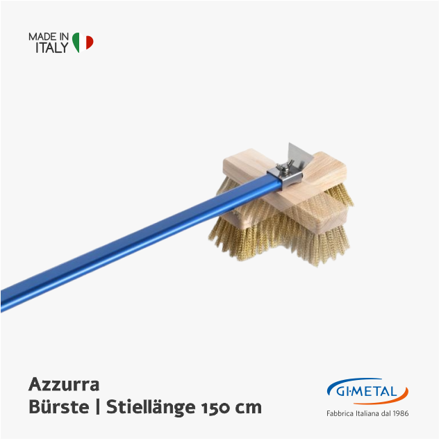 Gi.Metal Azzurra Drehbare Pizzaofen Bürste – Messingborsten mit Schaber | Stiellänge 150 cm | AC-SP/150